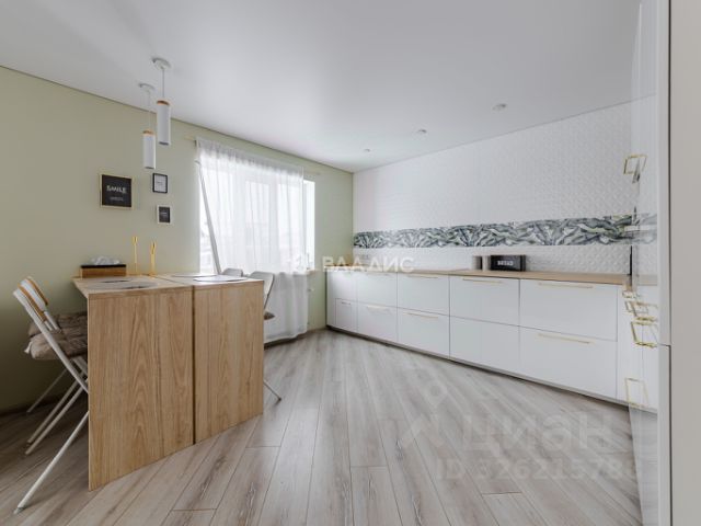 На 1 этаже кухня, просторная гостиная, гостевой санузел. Площадь этажа 74,5 кв.м, высота потолков 3,4м.