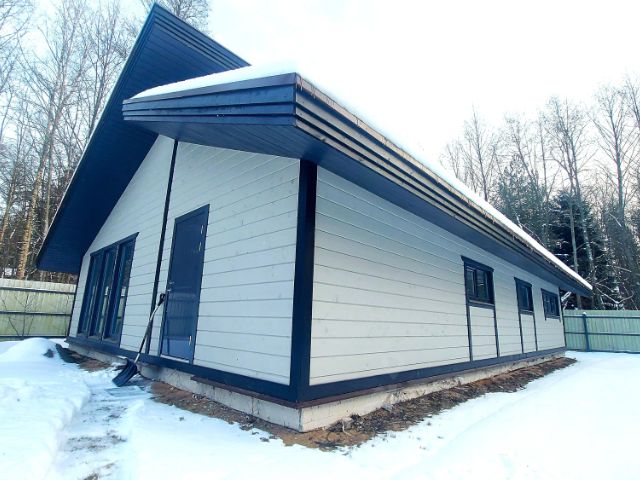 Стены дома с наружной стороны утеплены, обшиты сайдингом. Внутри без отделки. В котельной установлен насос для подвода в дом водоснабжения.