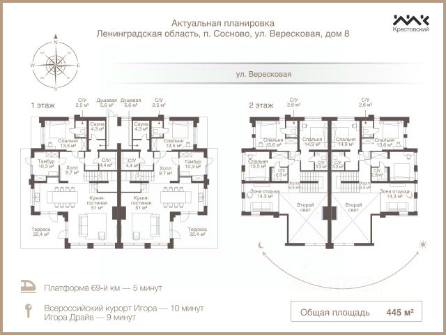 Одноэтажный дом из клеёного бруса (200*140(h))мм на участке 118 в КП Сосновские горки в готовности "под чистовую отделку". Установлен на железобетонной плите толщиной 200 мм с ростверком и утеплителем под плитой (шведский фундамент). В плите проложены трубки для утепления пола. Тёплый пол, который может обогреваться от электрического котла и от газового котла. Мощность на участок 15 кВт. В посёлок заведён газ среднего давления. По программе догазификации газопровод до участка может быть подведён бесплатно. В доме проведены электрические сети, установлены розетки, выключатели. Остаётся только повесить люстры. Сделана выравнивающая стяжка. Остаётся только уложить плитку или паркет, или ламинат. Проведены трубы ГВС и ХВС, проведены канализационные трубы. Установлен электрический котёл на 12 кВт. Установлены локальные очистные сооружения активного типа компании Аэробокс. Введена в дом вода. Водоснабжение от центрального водопровода из лицензированной скважины с питьевой водой. Кровля - металло черепица. Трасса выполнена из импрегнированной террасной доски. К участку подведён оптоволоконный интернет. В 100 метрах от участка парковая зона лесного массива с лесным ручьём и двумя прудами, прогулочной дорожкой, беседками. Это зона рекреации посёлка Сосновские горки для тихой и размеренной жизни и отдыха. В 2021 году на конкурсе КАИССА от ассоциации риэлтеров Санкт-Петербурга и Ленинградской области посёлок стал победителем в номинации "Лучший девелоперовский проект на рынке загородной недвижимости". В шаговой доступности находятся сосново-еловый лес, всесезонный курорт Игора, гоночная трасса Игора-драйв, магазин Пятёрочка, АЗС Лукойл, ресторан "Золотая форель", строительная база. До ж/д станции Сосново 20 минут пешком. Посёлок находится в границах населённого пункта Сосново. Где есть вся городская инфраструктура: школа, детский сад, магазины, кафе, рестораны, спортивные секции, клубы, рынок, церковь, стадион и мн. др. До Раздольнинского озера 10 мин на машине. Адрес: ЛО, Приозерский район, п. Сосново, КП Сосновские горки, участок 118 Площадь дома 120 м2 (включая террасу) Площадь участка: 7 соток Цена: 13 900 000 рублей Кадастровый номер участка: 47:03:1209002:791 Продажа домом с газом в поселке Сосново Приозерского района.