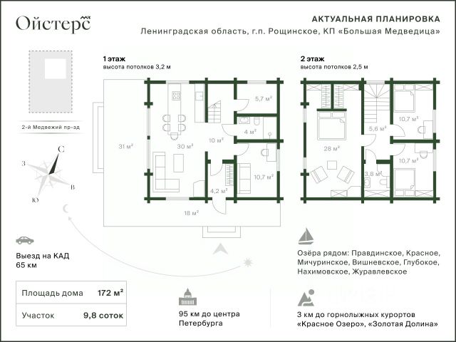 Это волшебное место для отдыха, рыбалки, сбора грибов и ягод, настоящей загородной жизни. Сюда приезжают, чтобы провести время в кругу друзей и близких, насладиться видами природы, чистым сосновым воздухом, а также, чтобы искупаться и позагорать в поселке для этого обустроен песчаный пляж с пирсом. Вход в воду пологий и песчаный, что особенно порадует маленьких домочадцев.