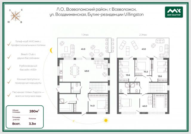 Уникальный Дом 390м2, с отделкой по дизайн-проекту, сауной, хамамом, бассейном с противотоком, бильярдом, мангальной, гостевым домиком-беседкой и необыкновенной красоты ландшафтным дизайном, в котором использованы более 1000 деревьев/растений, а так же фруктовым садом с яблонями, грушами, сливами, малиной, а центральным обьектом является пруд с карасями и каскадным водопадом и фонтаном!!! Основной дом каменный- 2 полноценных этажа, с высотой потолков более 3-х метров: на первом этаже- кухня, просторная гостиная с отдельной лаунж зоной и каминными креслами, кабинет с доп. Спальным местом, котельная с 2-мя газовыми котлами и резервным эл. Котлом, гостевой санузел, спа-зона с бассейном и противотоком, душевой, сауной и настоящим хамамом, плюс две летние террасы; на втором этаже- мастер-спальня с гардеробом и санузлом, гостевая спальня с гардеробом, детская комната, гостевая-игровая комната с бильярдным столом, сделанным на заказ, а также общий санузел! Гостевой дом-беседка: 70м2 теплый гостевой дом, 2 спальных места, кухня, тренажерный зал, огромная крытая терраса с барбекю и зоной для загара! Также в гостевом доме сделано хоз. Помещение+ помещение для оборудования водопада! Гараж на 2 авто+ 3 хоз. Помещения! Детская площадка+ прогулочные зоны+ летняя беседка+ садовая зона: парник, малина, фруктовый сад, лесная зона, газон с летним футбольным полем, баскетбольная площадка И так далее! Особую привлекательность представляет уникальный пруд, в котором живут караси, настоящий фонтан и летний водопад!!! Поселок с полным комплектом городских коммуникаций: газ, вода, электричество! Расположение- в 7 минутах езды от г. Всеволожск, находится в отдалении от шумной трассы, в сосновом лесу!! 30 минут езды до центра города, без пробок!! В поселке детская и спорт. Площадка, прогулочные зоны, за забором грибной лес!! В 5 минутах езды развлекательный комплекс Милкрик, в поселку от федеральной трассы идет хорошая дорога протяженностью 2 км, сделанная в этом году!! Приезжайте на просмотр, это нужно видеть своими глазами!!