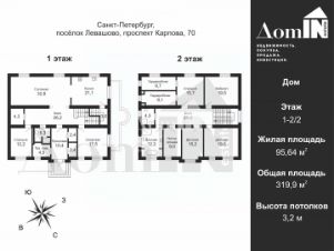 Арт. 113037134 Двухэтажный дом в п.Левaшово 319,9м2, на участке 12 соток. ИЖС.