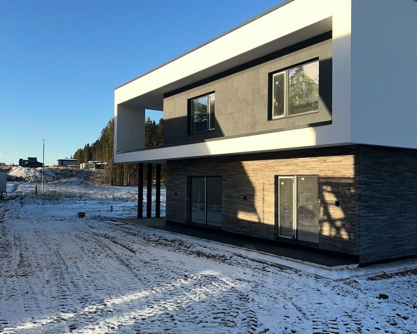Завершено строительство загородного дома, выполненного в стилистике органической архитектуры прерий с использованием натуральных материалов. Дух минимализма в стилистике дома обусловлен лаконичностью деталей и строгостью линий в сочетании с большим количеством стеклянных конструкций. Над конструктивом и стилистикой дома, включающей подборку фасадных материалов, декоративных элементов, цветовой гаммы, работали специалисты архитектурного бюро. Общая площадь дома 271кв.м. (171 кв.м. по тёплому контуру). Высокие потолки (3,40 м.) Свободная планировка даёт возможность организовать жилое пространство в зависимости от Ваших предпочтений. Все коммуникации в доме (водоснабжение, электричество 15 квт, канализация). Газоснабжение подведено к дому. Конструктив дома: фундамент - монолитная плита 300мм с утеплением , несущие стены - натуральный кирпич, перекрытие - монолитная ж/б плита, утепление стен - минеральная вата 100мм. Облицовка дома выполнена ригельным клинкерным кирпичом в сочетании с реечной фасадной системой из натурального дерева, кровля - пвх мембрана с возможностью организации террасы площадью до 240 кв.м. в дополнение к уже имеющимся двум террасам площадью 40 и 60 кв.м. В доме установлены алюминиевые окна премиум класса в максимальной комплектации. Проходные элементы и система приточной вытяжной вентиляции - фирмы Vilpe. Комплектация white box (система отопления с теплыми полами, стяжкой и разводкой водоснабжения, разведенная электрика, перегородки под ваш проект, оштукатуренные стены и откосы) +2.000.000₽ Дом расположен в КП бизнес класса (при этом с невысоким уровнем стоимости КУ, включающих уборку территорий ,вывоз ТБО и т.д.). Удобная транспортная доступность (два въезда в поселок с разных дорожных магистралей, близость ТРК и магазинов, парков отдыха и т.д.). Круглосуточно охраняемый поселок с просторными, освещенными улицами оснащен детскими и спортивными площадками. КП окружён хвойным массивом, идеальным для прогулок , занятием активными видами зимнего и летнего спорта (квадроциклы, велосипеды, снегоходы). Помощникам в продаже и торговым представителям просьба не беспокоить. В этом направлении: Мистолово Энколово Мендсары Порошкино Корабсельки Капитолово Агалатово Скотное Вартемяги Киссолово Сярьги Дом рядом с метро Пионерская.
