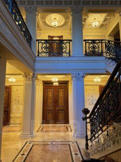 Резиденция в Павловске в окружении дворцов и парков Императорской семьи с интерьерами в стиле эпохи XIX века. В парадную часть дома ведут двери, инкрустированые тонким узором из ценных и пород дерева. Перед вами открывается великолепный парадный холл с торжественной мраморной лестницей. Главным достоинством планировки особняка является комфортное зонирование. Дом разделен на жилую часть, спа-комплекс и павильон для отдыха. Зоны различаются по стилю оформления и занимают отдельные крылья особняка. К дому пристроен гараж, есть дом для проживания охраны и помещение для хранения. Особняк спроектирован таким образом, что окна большинства комнат выходят в собственный великолепный сад, где в кронах кленов, дубов,лиственниц и яблонь поют соловьи. Насыпной холм с террасами, усаженный цветами и стелющимися хвойниками, скрывает винный погреб. В сад можно выйти из гостиной и спа-комплекса через большую террасу. Терраса вымощена натуральным камнем и украшена вазонами с цветами. Нижний этаж жилой части дома — парадный, его интерьеры выполнены в классическом дворцовом стиле. Здесь расположились основная кухня, столовая, гостиная, кабинет, библиотека,а также комната для гостей. Мебель известного итальянского бренда Artе Aredo изготовлена специально для этого особняка. Фасады консолей и шкафчиков в гостиной — из корня акации, с подбором натуральной текстуры материала в тонкий симметричный узор. Кухня с мраморными столешницами и большим островом оснащена дополнительной системой вентиляции. На втором этаже находятся спальни, гардеробные и ванные комнаты. Рядом с одной из спален есть комната для няни, к другой примыкает собственная малая гостиная. Интерьеры комнат второго этажа выполнены в духе дворцовой классики, столь уместной в Павловске. Спа-комплекс с переливным бассейном, турецкой и финской банями находятся в отдельном крыле и стилизованы в античных мотивах. Чаша бассейна и джакузи выложены мозаикой, на стенах фрески с античными руинами, потолок расписан в технике гризайль, пол — мраморные плиты со специальным влагостойким покрытием. Система водоподготовки и вентиляции автоматизированы. За спа-комплексом расположилась пристройка-павильон для отдыха. Это галерея с внушительной печью-барбекю, с полностью оснащенной кухней и столовой, декорированное в стиле прованс: кованые светильники, пол из натурального камня. Павильон со стеклянным фасадом, обращенным в сад, оборудован теплым полом и теплоэффективными стеклопакетами. Летом широкие двери распахиваются в сад, и вся комната становится зеленой гостиной. Некоторые технические характеристики. Площадь дома 645 кв. м, пристройка площадью 200 кв. м, которые не входят в площадь основного дома. Возможно увеличение используемой площади дома на 150 кв. м за счет мансардного этажа , а также приобретение соседнего участка 33,5 сотки. Особняк в идеальном состоянии , готов для комфортного проживания. Продам дом в микрорайоне Павловск в Санкт-Петербурге.