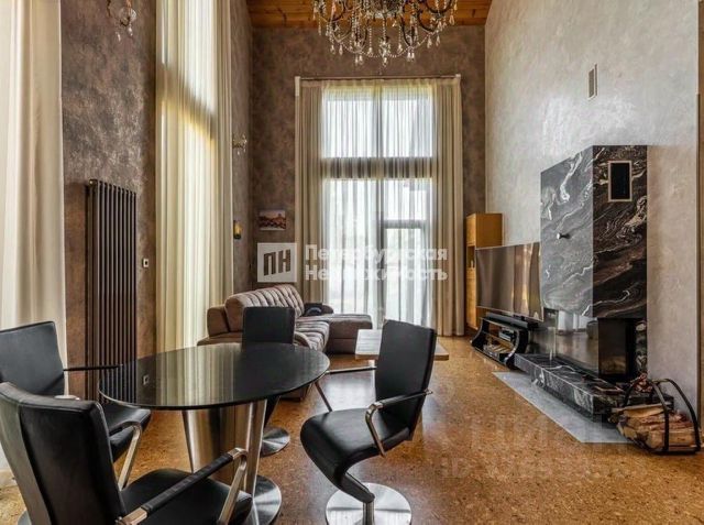 Стены - венецианская штукатурка из Италии и экологичные обои из Франции. Полы - наборный художественные паркет и итальянская плитка. Потолки от 3 до 8 м. В гостиной великолепный второй свет. Двери - массив с инкрустацией, из Италии.
