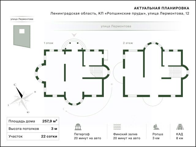 Уникальное предложение для тех, кто мечтает найти единение с природой, не расставаясь с городским комфортом новый загородный дом в престижном коттеджном поселке, всего в 40 минутах езды от Петербурга. О локации Живописное место рядом лес, река, озеро. Из панорамных окон и с открытых террас дома открываются умиротворяющие виды на зеленую долину рядом огромное поле для гольфа (международный класс). Всего несколько минут езды на машине, и вы гуляете в красивейших парках Петергофа, Стрельни и Ораниенбаума! О Коттеджном Поселке Коттеджный поселок бизнес-класса Земляничные поляны это не только высокий уровень безопасности, но также комфорт и разнообразие досуга. Зимой лыжные трассы (лыжи, коньки, ватрушки). Летом конные и велосипедные прогулки по живописным окрестностям. В клубном доме есть ресторан, СПА и фитнес-зал. О доме Энергоэффективный двухэтажный коттедж с мансардой построен по современной каркасной технологии. Утолщенный финский фундамент, каркасные панели с утеплением (Rockwool 250 мм), утепленная кровля из металлического фальца. Сделана пароизоляция; окна с повышенной теплоизоляцией. Внешняя отделка гипсокартон, внутри мембрана Tyvek HouseWrap. Подведены все коммуникации: центральное водоснабжение (установлен фильтр), полностью оборудованная система канализации, выделенная мощность электричества 15 кВт, отопление теплый водяной пол, газ подведен к участку, установлены кондиционеры. Внутреннее пространство Высокие потолки (до 5 м) Напольное покрытие бесшумный кварцвинил. Лестница из дерева. Две открытые панорамные террасы (на одной есть место для установки гриля). Стильный дизайн белоснежные стены вкупе с яркими контрастными панелями. Продуманная планировка, позволяющая максимально комфортно зонировать пространство. Большая кухня, просторная гостиная, кладовая, котельная, три санузла, отделанные плиткой (один на 2 этаже), холл, 5 спален (две на 2 этаже), мансарда как дополнительная зона для воплощения ваших идей. Об участке Большой участок (17 соток) позволяет создать неповторимый ландшафтный уголок, высадить сад, обустроить пруд, зоны отдыха в общем, сделать его вашим личным Местом Силы. Об инфраструктуре Все необходимое в радиусе 5 км (5 минут езды): магазины, кафе, детсады и школы, бассейн, кинотеатр, спортивные залы и клубы. Транспортная доступность Удобный выезд на КАД (по прямой всего 1 км) За 40 минут можно доехать на автомобиле до Московского проспекта. Красота природы, гармония, неповторимый уют загородной жизни. И вместе с тем качественная досуговая инфраструктура, право стать членом гольф-клуба, статусные соседи и близость городской цивилизации. Звоните, бронируйте удобное время просмотра будем рады, если именно здесь вы найдете истинный комфорт для души. Купить коттедже у реки в Ломоносовском районе Ленинградской области.