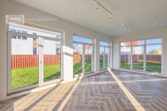 Дом стоит на ровном и сухом участке ИЖС 12 сот. Площадь дома 205.3м2 включая террасу 49.1 м2 на первом этаже и лоджию 15.4 м2 на 2-ом этаже с выходом из 2-х спальных комнат. Всего 5-ть спальных комнат, одна из которых расположена на 1-ом этаже 11.6 м2, можно использовать под кабинет, гостевую комнату или спальню.
