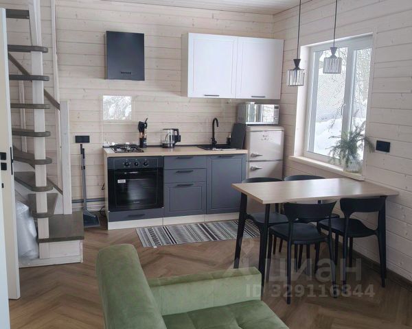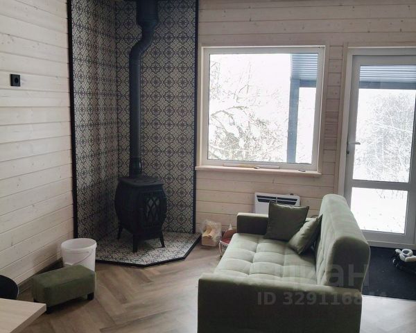 Наружная отделка - вертикальный современный сайдинг, внутри стены обшиты имитацией бруса `карельский профиль` с увеличенным шипом, окрашена до и после монтажа. На полу кварц-винил, уложенный елочкой. В санузле на полу плитка - теплый пол.Отделка сауны - липа, полки - осина. Дом частично меблирован - кухня укомплектована необходимой бытовой техникой, в гостиной - диван, в СУ - стиральная машина.