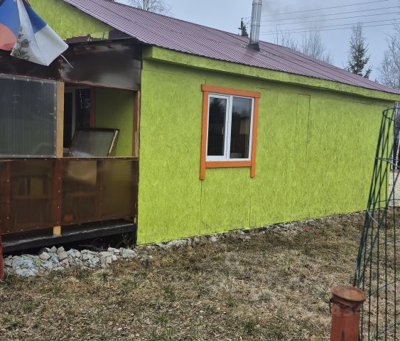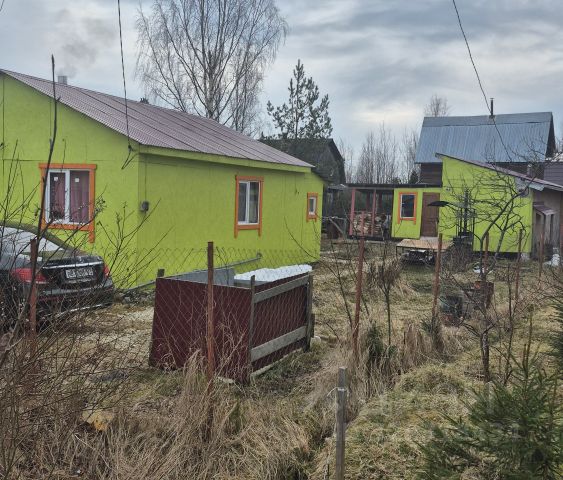 Крепкий дом, в котором можно жить круглогодично. Общая площадь 57 кв.м. Стены из бревна, фундамент ленточный. Три года назад обшили сайдингом, сделали пристройку, где оборудован туалет и кухня, планировали поставить душевую кабинку, место под нее оставлено. На первом этаже большая комната, в которой расположена печь в рабочем состоянии, хорошо обогревает дом. На втором этаже одна большая комната, где проходит труба печи, которая обогревает, и две вместительных кладовых. Окна стекло пакетные. Антенна Триколор. Электричество 15 кВт.