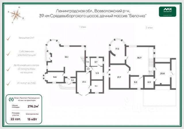 Всего 30 минут по ЗСД до центра Петербурга без пробок. В окружении лесного массива — чистый воздух и приватность. Эпицентр курортной жизни: в непосредственной близости - Репино, Комарово, Сестрорецк, Солнечное, Зеленогорск. Рядом — озеро Сестрорецкий Разлив (13 км) и река Сестра для отдыха и прогулок. Комфорт и безопасность: