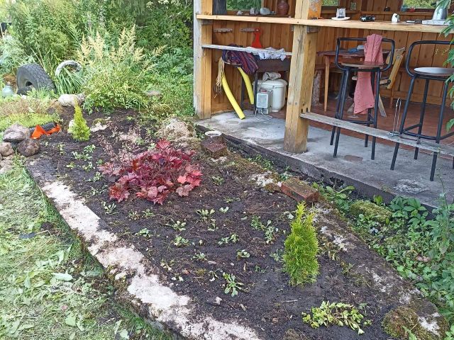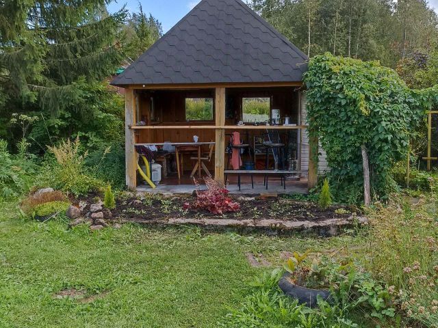 на участке 7,75 сот: 2 дома, колонка, плодовые кусты (малина, смородина красная и черная, крыжовник, черноплодная рябина) и деревья (яблони белый налив и другие виды, не знаю точно, плодов всегда много), цветы (пионы, ирисы).