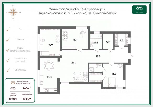 Арт. 111881450 Современный коттедж на берегу озера Длинное! Удивительная и неповторимая природа Карельского перешейка, дом стоит на берегу озера, окруженный сосновым лесом. Рядом элитная коттеджная застройка, интеллигентные соседи. КАД, ЗСД в 20-и минутах езды, метро Беговая в 50-и минутах езды транспортом. Удачная локация, коттедж расположен между КП Репино Парк и г. Зеленогорском! Дом полностью достроен, проектировался главным архитектором г. Санкт-Петербурга Александром Викторовым по эксклюзивному дизайн проекту, монолитная плита 300 мм, каркас из монолита, перегородки из газобетона 400 мм + утепление + штукатурка, кровля мягкая черепица. Идёт доделка обоих монолитных лестниц и ландшафтного дизайна на участке ! На первом этаже находится: большая кухня-гостиная, прихожая, холл, гардероб, сан-узел, кладовая, подсобное помещение, техническое помещение, гараж, спорт-зал, терраса для летней кухни с печью. На втором этаже: четыре спальни , одна из которых мастер-спальня с гардеробной и сан-узлом, кабинет, зимний сад, гардеробная, сан-узел, хозяйственное помещение и зона парной с душевой и комнатой отдыха. и конечно большая терраса! Всё продумано максимально функционально, общая площадь коттеджа 456.5 метров квадратных, что позволяет по желанию переоборудовать помещения на свой вкус и осуществить в отделке свои самые смелые, чудесные решения. Коммуникации заведены, 15 кВт электричества, газ, 2 котла по 35 кВт, отопление во всём доме по полам. Продуктовые и хозяйственные магазины в пяти минутах езды на автомобиле. Небольшие платежи за охрану и содержания дорог. Великолепная локация и функциональный, современный дом! Продается дом с участком 10 соток в сельском поселении Первомайское Выборгского района.
