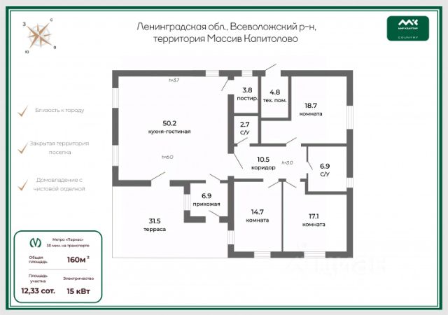 Арт. 117960265 Предлагается к продаже атмосферный, деревянный дом из настоящего финского бруса, общей площадью 180,6 кв.м, на участке 12,7 сотки с живописным ландшафтом и вековыми соснами! Дом расположен в одном из лучших элитных поселков Ленинградской области Охтинском парке. Статусные соседи, однородное окружение! Лесной, очень ухоженный поселок со всей необходимой инфраструктурой для жизни и полноценного семейного отдыха на природе: широкие асфальтированные дороги и пешеходные тротуары, детские площадки для разных возрастов, частный детский сад, спортивные площадки, прогулочные аллеи, кафе, площадка для дрессировки собак и многое другое. Работает профессиональная управляющая компания, закрытая территория и круглосуточная охрана (3 КПП) обеспечит безопасность вашего проживания. В поселке сохранен великолепный хвойный лес с реликтовыми соснами, которые создают волшебную атмосферу и уникальный микроклимат. В 3х минутах богатая инфраструктура курорта Охта парк и прочих близлежащих поселков. О доме: Взгляните на фотографии идеальный дачный интерьер непринужденный, уютный, теплый именно эти ощущения вызывают деревянные дома. Дом выполнен из качественного финского бруса (Лапландия). Основная площадь дома расположена на 1 этаже - это кухня- гостиная со вторым светом, с очаровательным камином и выходом на просторную террасу, 2 спальни, 2 с/у. И конечно же, особого внимания заслуживает шикарная баня по белому, с комнатой отдыха и душевой. Кроме того, на 1 этаже расположены: котельная и теплый гараж с дополнительными хозяйственными помещениями и своим отдельным входом. На 2 этаже расположена более приватная часть с просторным холлом, спальней и душевой. В доме предусмотрены все коммуникации магистральный газ, канализация, центральное водоснабжение, электричество 15 кВт, интернет оптоволокно, теплый водяной пол и радиаторы по всем этажам, видеонаблюдение по всему периметру дома. Участок, на котором расположен дом, имеет площадь 12,7 соток. Здесь выполнен живописный ландшафтный дизайн - сохранены вековые сосны, а дорожки из натурального камня, кустарники и цветники создают уютную атмосферу. Кроме того, на участке Вы найдете очаровательную финскую беседку-гриль, а также полезный и всегда востребованный навес на 2 автомобиля. Этот дом отличный выбор для тех, кто ценит красоту природы, но не желает отказываться от комфорта городской жизни! Инфраструктура Поселок граничит с одним из лучших курортов ЛО - Охта парком - местом лучшего семейного отдыха во все сезоны! Это горнолыжные трассы, трассы для беговых лыж, ватрушечный склон, невероятный лесной каток, открытые подогреваемые бассейны , крупнейший современный СПА-центр (площадью более 4,5 тыс кв.м), роскошный банный комплекс, более 6 ресторанов, пиццерий и кафе, всесезонная ярмарка на центральной площади, детский развлекательный центр Индиго ( ваших малышей можно всегда оставить под присмотром опытных нянь и воспитателей), детские развлекательные площадки с батутами, каруселям, прогулочные дорожки в сосновом лесу, зоопарк, динопарк, крупнейшие в ЛО веревочные парки, спортивные площадки, теннисные корты. Одна из лучших профессиональных горнолыжных школ Ohtateam - работает круглый год! В 10 минутах от поселка расположены несколько частных школ : "Сверхновая" в Охта парке, Деловая волна в КП Ламбери, н