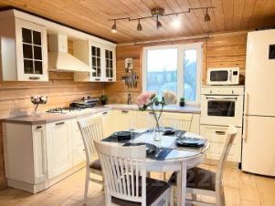 1ый этаж: прихожая, светлая гостиная с теплыми полами, просторная спальня, современная кухня со встроенной техникой (стиральная машина, посудомоечная машина, духовка, вытяжка, варочная панель), санузел с теплыми полами, большой забетонированный погреб.
