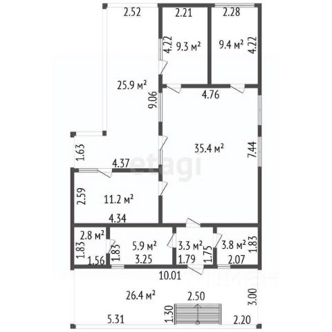 Дом состоит из двух обособленных частей, каждая из которых имеет свой отдельный вход.