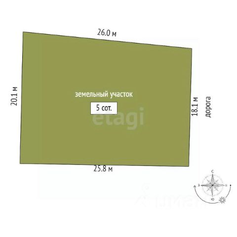 Участок ровный, прямоугольной формы. Разработанный и ухоженный. Растёт всё. Есть 3 яблони; вишня, крыжовник, кусты смородины (белой, красной, черной); куст жимолости; малина, клубника и даже виноград! Много хвойных кустарников, в т.ч. кедр, ели. Есть грядки, посадки. И конечно же цветы..)).