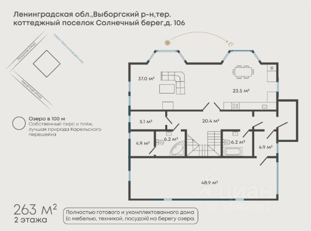 Прекрасный дом в отличной локации! Предлагается к продаже новый современный дом с панорамным остеклением в п. Овсяное. Поселок расположен на берегу красивейшего живописного озера Нахимовское, среди великолепных реликтовых сосновых лесов . К поселку ведет асфальтированная дорога через лес. Это место для отдыха, рыбалки, сбора грибов и ягод, загородной жизни. РАССТОЯНИЕ ОТ ДОМА ДО ОЗЕРА ВСЕГО 15 мин пешком ! Статусные соседи. О доме: Дом построен в 2018г. Жилая площадь 246 кв м. Плюс подземный этаж 100 кв м .Строили для себя! Панорамное остекление практически по всему периметру 1 и 2 этажа создает ощущение света и простора . Продуманная и функциональная планировка включает в себя на 1 этаже: прихожую, кухню-гостиную со вторым светом . Просторная гостиная позволит воплотить любые ваши самые смелые желания для комфортного проживания большой и дружной семьи! Кроме того, на 1 этаже расположены:две гостевые комнаты, санузел, котельная, Особого внимания заслуживает шикарная терраса , которая может эксплуатироваться в любую погоду. Зона гриля, мангала, барбекю, патио-кухня и многое другое . На 2 этаже расположены 2 спальни с выходом на балкон, также ванная, а также зона - видовой холл. Технические характеристики дома: Построен с использованием премиальных материалов . Обладает отличными энергосберегающими характеристиками. Этажность: 3 х этажное; третий этаж -мансарда. Фундамент -ленточный , монолитный 700 мм Материал стен- кирпич 700 мм KNAUF Фасад -кирпич олицовочный тычковая кладка Внутри -двойной поризованный кирпич Кровля металлочерепица финского производства Внутренняя отделка - декоративная штукатурка под покраску Материал террас - плитка керамогранит В доме предусмотрены все коммуникации электричество 15 кВт, канализация-септик, 2 колодца , собственная скважина 96 метров установлен газгольдер-4800 л и магистральный газ Об УЧАСТКЕ: Площадь 20 соток.Межевание произведено . Земельный участок обладает отличными характеристиками: правильная форма, солнечный и сухой, идеально расположен по сторонам света южный Участок культивирован -газон , въезд, место для парковки, установлено ограждение по всему периметру участка . Автоматические ворота . Категория - земли населенных пунктов, разрешенный вид использования ИЖС. Инфраструктура: До Санкт-Петербурга 1 час на автомобиле. Отличная транспортная доступность. В нескольких км (п. Первомайское) магазины, ТК, строительные магазины все, что нужно для комфортного проживания за городом. 1 взрослый собственник! Прямая продажа. Просмотры в субботу-воскресенье ! Вся сумма в договоре ! Купить коттедж с участком 20 соток в городском поселении Рощинское Выборгского района.