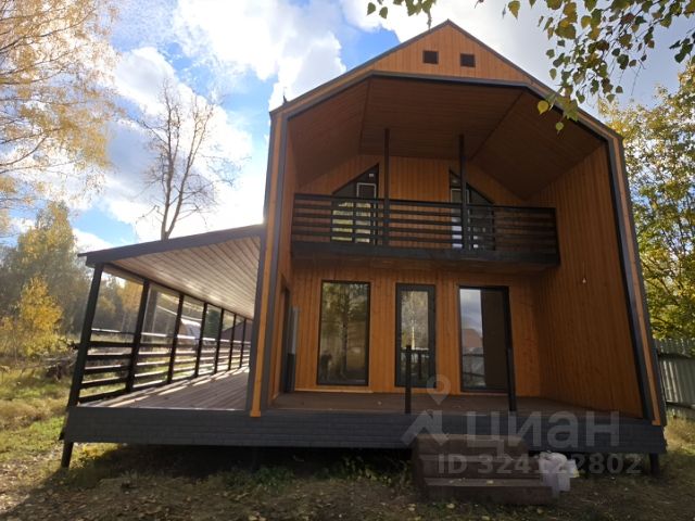 Дом построен из тонкого бревна, обшит снаружи и внутри вагонкой.