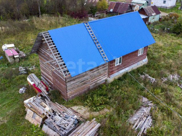 Баня из бревна, старенькая, но действующая. Крытая беседка.