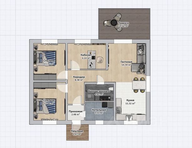 Большая кухня-гостиная 25 м с выходом на террасу 30 м