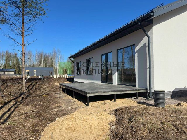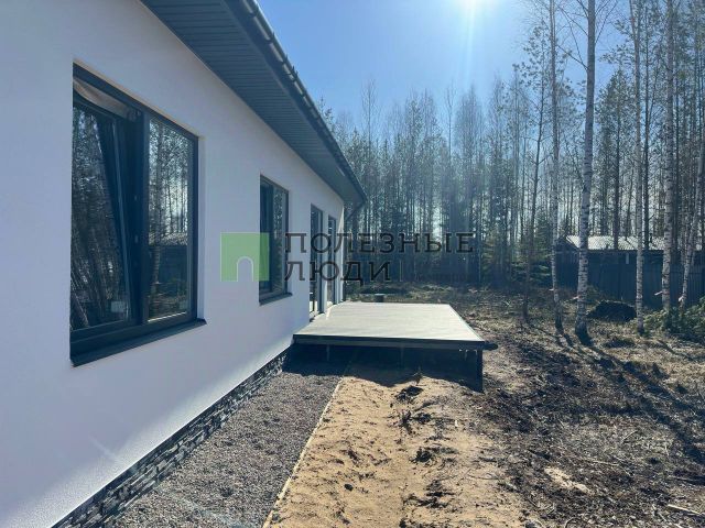 Участок - 6 соток, ИЖС, с межеванием, разработанный, дренирован, установлен забор по периметру. Участок правильной прямоугольной формы, сухой, без воды. Проведены все земляные работы, водоотведение, въездная группа, все инженерные коммуникации проведены в дом: скважина, септик, центральный газопровод, электричество 15 кВт. Тёплые водяные полы во всех помещениях.