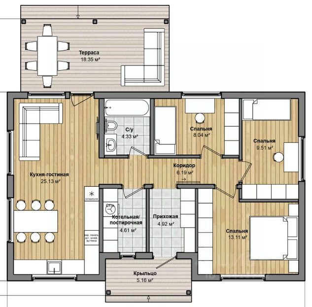 Дом 2018 г. постройки - 94,8м, с большой кухней-гостинной 35,3м, с хорошим видом и выходом на террасу и двор.