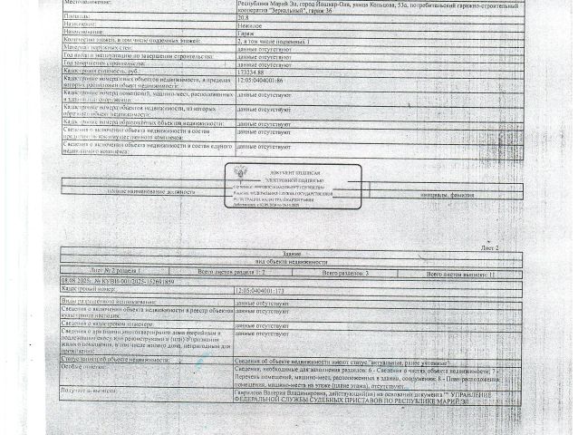 Данные получены с сайта ГИС Торги. Земельный участок 24 кв.м, к/н: 12:05:0404001:86; Здание нежилое 20,8 кв.м, к/н: 12:05:0404001:173, расположенные по адресу: г. Йошкар-Ола, ул. Кольцова,д.53а ПГСК "Зеркальный", гараж 36, принадлежащие должнику Богданову А.А