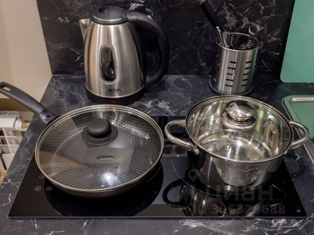 Техника: ТВ, плита индукционная, стиральная машина, холодильник, бойлер, фен, светильники- все новое .