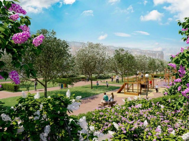 Благоустройство - главное преимущество проекта: протяженность пешеходных аллей составит 1,5 км. На территории будут высажены три сада: яблоневый, вишневый и сиреневый. Созданы кленовая, сиреневая, яблоневая и вишневые аллеи, а центром притяжения станет площадь с еловым сквером и взрослой елью.