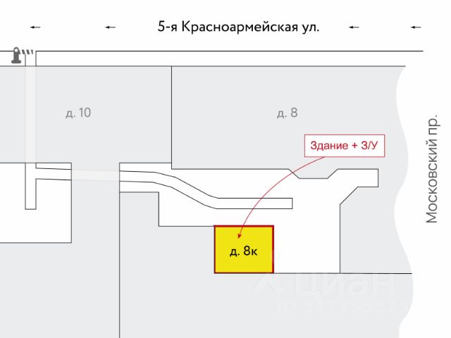 Код лота: 62C46C9-4001-7402-1. Реализуется на торгах. Нежилое здание площадью 27, 8 кв. м, расположенное на земельном участке площадью 40 кв. м на 5-й Красноармейской улице Площадь здания 27, 8 кв. м Площадь з/у: 40 кв. м Собственность. Объект представляет собой одноэтажное здание, а также земельный участок под зданием площадью 40 кв. м. На данный момент строение не используется. Пешеходный и автомобильный трафики по 5-й Красноармейской улице средние. Доступ в здание осуществляется через отдельный вход со двора. Подъезд к объекту свободный. Парковка осуществляется на близлежащих улицах и внутриквартальных подъездах. Окружение представляет собой жилую застройку с включением коммерческих объектов. Технические характеристики: Инженерные коммуникации: электроснабжение Текущее использование здания: не используется Состояние здания: удовлетворительное, требует ремонта Кадастровый номер здания: 78:32:0001671:2302 Этажность: 1 Кадастровый номер земельного участка: 78:32:0001671:2533 Категория земель: земли населенных пунктов Вид разрешенного использования: предоставление коммунальных услуг Согласно справке КГИОП 01-43-5655/25-0-1 от 01. 04. 2025 объект по адресу: Санкт-Петербург, 5-я Красноармейская улица, дом 8, литера К, расположен за границами территорий объектов (выявленных объектов) культурного наследия и к ним не примыкает. Транспортная доступность: Станция метро "Технологический институт" - 640 м Ближайшая остановка общественного транспорта 230 м (2 минут пешком) Оптимальное использование объекта: использование здания в качестве объекта складского назначения https://catalog. lot-online. ru/index. php?dispatch=products. view&product_id=1299682