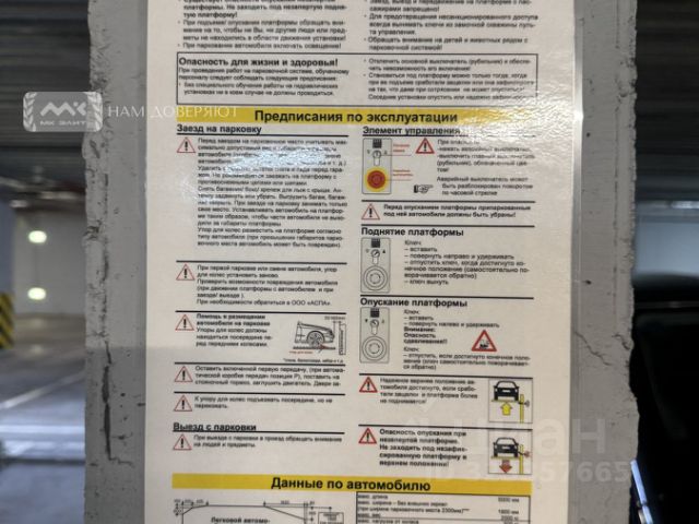 Арт. 123629086 Продается место в подземном паркинге на два автомобиля с подъемником в ЖК Аристократ. Грузоподъемность и габариты подъемного механизма на фото