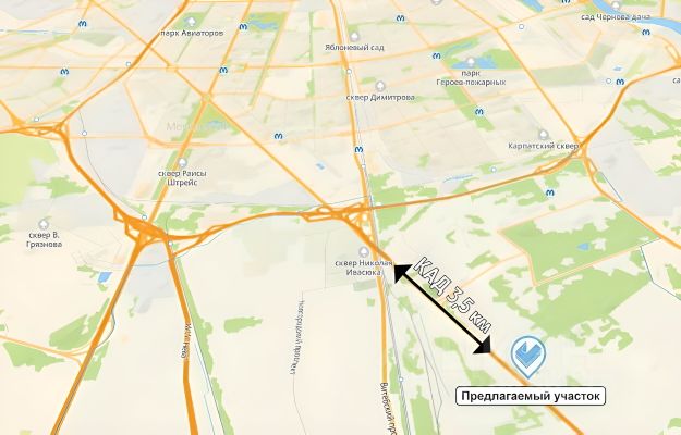 - Земельный участок находится 3,5 км до КАД, на въезде в город.