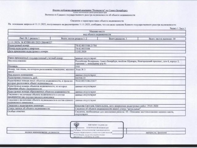 Данные получены с сайта ГИС Торги. Подвергнутое аресту принадлежащее должнику ООО Автоспектр имущество: машино-место общ.пл. 14,6 кв.м. кад. 78:42:0015106:21704 расположенное по адресу: г. Санкт-Петербург, посёлок Шушары, Новгородский проспект, дом 6, корпус 2, строение 1, помещение м/м 91. Обременение: запреты регистрационных действий ФССП.