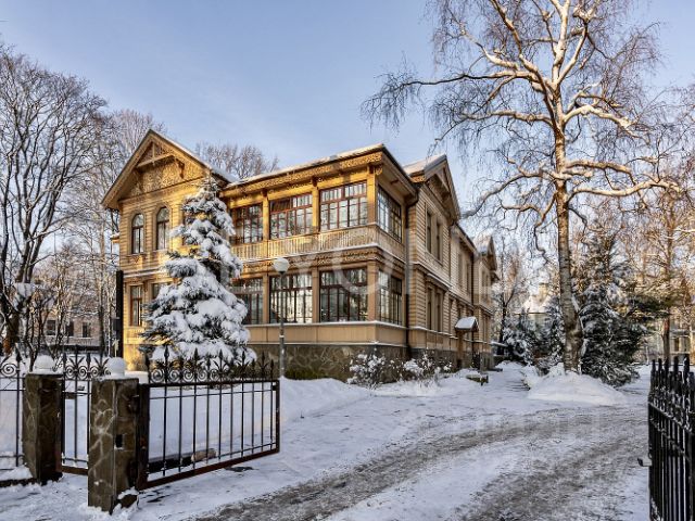 Предлагается к покупке один из самых красивых и значимых объектов Каменного острова в неорусском стиле Особняк Руадзе на набережной реки Малая Невка.