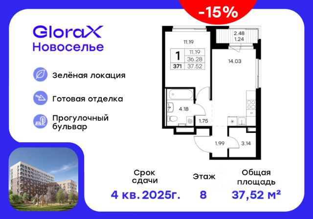 1-комнатная квартира площадью 29.50 в ЖК "А101 Лаголово" c лоджией на 5 этаже. Квартира с отделкой. Вид из окна во двор. В квартире 1 санузел. Высота потолков 2.8 м. Ключи в 2025 году. Предложения от застройщика на октябрь 2025: - Гибкая рассрочка 20 000 руб/мес. и первым взносом 10%. ОТДЕЛКА Для квартир с чистовой отделкой предлагается три варианта дизайна: Классика, Карелия светлая и Карелия темная. Варианты всех дизайнерских решений представлены на фотографиях. Подробности можно уточнить у менеджера. На все отделочные работы от застройщика предоставляется гарантия. ОСОБЕННОСТИ ПЛАНИРОВКИ Глубокая лоджия от 1,4м позволяет организовать отдельный кабинет, мастерскую или зимний сад с лаундж-зоной. ПАРАДНАЯ В каждой парадной предусмотрены места для хранения велосипедов и колясок, гостевой санузел, лапамойка (место для мытья домашних животных или колес велосипедов) и удобная зона ожидания для гостей. ДВОРЫ И ОКРУЖЕНИЕ Просторные дворы свободны от машин и закрыты от посторонних. Большую часть комплекса займут благоустроенные зелёные зоны, теневые сады и городские общественные пространства с развитой тротуарной сетью и велодорожками. Каждый дом оборудован системами видеонаблюдения и контроля доступа. "А101 Лаголово" - современный город у подножия знаменитых Дудерговских высот, в объятиях чистейших озёр и зелёных живописных массивов, наполненный всем необходимым для счастливой жизни. ИНФРАСТРУКТУРА. Мы занимаемся комплексным освоением территории. Наш приоритет - доступность всех сервисов для счастливой жизни. 1. Лаголово-город 15-ти минутной доступности. Вся необходимая инфраструктура: магазины, салоны красоты, образовательные учреждения, медицинские центры находятся в 15-ти минутах пешей прогулки от любой точки жилого комплекса. Это позволяет не тратить время на долгие перемещения. 2. Представьте идеальный город, где ребенок может спокойно играть, а пожилой человек наслаждаться заслуженным отдыхом. Жилая среда нашего комплекса может комфортно использоваться как 8-летним ребенком, так и 80-летним пожилым человеком. Дома, улицы, общественные пространства, тротуары спроектированы с заботой о людях разных возрастов. 3. Мы активно развиваем авторскую образовательную экосистему "Лёрнити". Она включает строительство 8 современных детских садов (2000 мест) и 3 школ (2945 учащихся). Мы учим родителей гармонично общаться с детьми, помогаем малышам подготовиться к школе, а подросткам - выбрать будущую профессию и развить таланты. Не хватает средств на покупку кладового помещения? Оформите ипотеку на квартиру и добавьте к ней часть стоимости кладовой. ЗАСТРОЙЩИК ГК "А101" - крупный инвестиционно-строительный холдинг, занимает 6-е место по объему строительства в России (по данным "Единого ресурса застройщиков" на 2023 год). НКР присвоило ГК "А101" кредитный рейтинг A+.ru, подтверждая его надежность и финансовую устойчивость для завершения строительства ЖК.