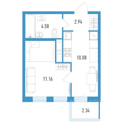 Уютная однокомнатная квартира. Делали ремонт для себя: меняли полы, двери; стены и потолок выровнены; сантехника заменена. Имеется спальная зона, небольшая кладовка. Центральное водоснабжение, в том числе горячее.