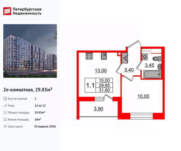 Продается уютная 1-комнатная квартира от застройщика в жилом комплексе "Бионика Заповедная" в динамичном Приморском районе. До метро можно добраться на транспорте всего за 11 минут. Удобная, классическая, функциональная европланировка, большая кухня-гостиная 13 м², вместительная прихожая 3.4 м². Общая площадь квартиры - 29.85 м², жилая 10 м², высота потолка 3 м. Квартира продается с отделкой "NORD LINE SILVER ВК NEW". Что особенного в ЖК "Бионика Заповедная"? • Оазис в городе 3 минуты пешком до Новоорловского заказника (140 ГА) • Захватывающие виды из окон на хвойный лесопарк • Всесезонный "Заповедный парк" во дворе площадью 23000 кв.м. • 5 единых входных групп с авторским дизайном и лаундж-зонами, сити-виллы на первых этажах с палисадниками и высотой потолков до 4 м • Места притяжения: фонтан "Бионика", спортивный кластер со скейт-парком, фотозоны с арт-объектами