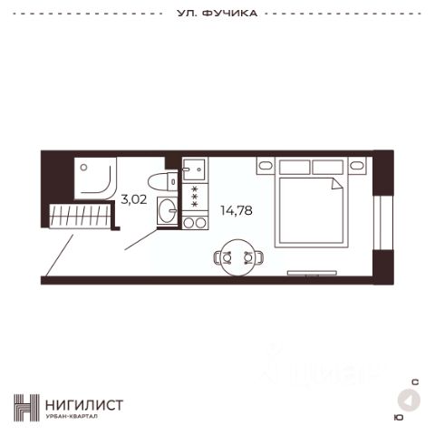Продаётся 1-комнатная квартира в строящемся доме (Корпус 2), срок сдачи: I-кв. 2028, общей площадью 17.59 кв.м., на 10 этаже. Новый жилой дом от застройщика "СЗ БЛЭКСМИТ" расположен по адресу: Санкт-Петербург, Улица Фучика, д. 17, литера В.