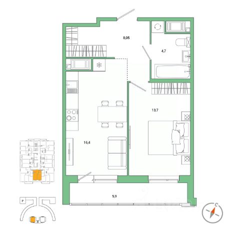 Продается уютная 1-комнатная квартира от застройщика в жилом комплексе "Бионика Заповедная" в динамичном Приморском районе. До метро можно добраться на транспорте всего за 11 минут. Удобная, классическая, функциональная европланировка, большая кухня-гостиная 13.3 м², вместительная прихожая 3 м². Общая площадь квартиры - 29.85 м², жилая 10 м², высота потолка 2.77 м. Квартира продается с отделкой "Норд Лайн светлый плюс". Что особенного в ЖК "Бионика Заповедная"? • Оазис в городе 3 минуты пешком до Новоорловского заказника (140 ГА) • Захватывающие виды из окон на хвойный лесопарк • Всесезонный "Заповедный парк" во дворе площадью 23000 кв.м. • 5 единых входных групп с авторским дизайном и лаундж-зонами, сити-виллы на первых этажах с палисадниками и высотой потолков до 4 м • Места притяжения: фонтан "Бионика", спортивный кластер со скейт-парком, фотозоны с арт-объектами Купить квартиру гостинку на проспекте Орлово-Денисовский в Санкт-Петербурге.