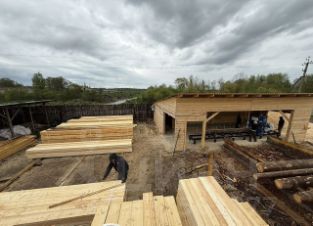 по границе с нашим участком со зданием склада, продается также пустой большой участок, возможно совместное приобретение.