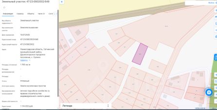 Земельный участок с кадастровым номером 47:23:0902002:649, площадью 1700 (одна тысяча семьсот) кв.м., расположен по адресу: Ленинградская область, Гатчинский муниципальный район, Дружногорское городское поселение, с. Орлино. Кат...