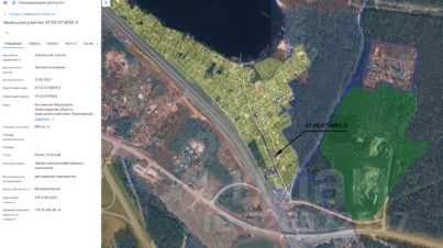 Арт. 128578543 Продается земельный участок площадью 24.07 соток, образованный из двух смежных участков с кадастровыми номерами 47:07:0164001:1266 и 47:07:0164001:1264.