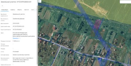 Земельный участок с кадастровым номером 47:22:0303003:19 площадью 1650 кв. м, земли населенных пунктов; для ведения личного подсобного хозяйства