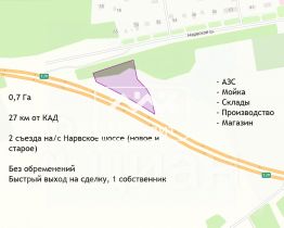 Продажа земельного участка под придорожный сервис (СТО, торговля, кемпинг) на скоростной трассе М11 Санкт-Петербург-Москва (Нева) в собственность, расположенного на юге Санкт-Петербурга, на границе Ленинградской области. Индустриальный парк М10 Пионер