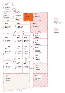 Пять земельных участков различной площади. Возможна продажа по отдельности каждого земельного участка.