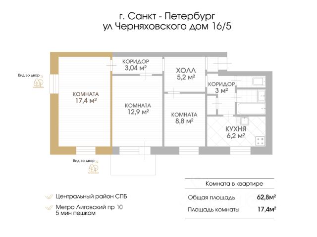 Код объекта: 2058135. Комната в центре Санкт-Петербурга — локация, за которую ценят и покупают. Всего 15 минут пешком до ведущих вузов города — удобно для учебы и стабильно востребовано для аренды. До Троицкий собор — 450 метров, до набережной реки река Фонтанка — 750 метров. Это настоящий центр Петербурга — атмосферный, живой, удобный. Рядом всё необходимое для комфортной жизни: Пекарня "Цех 85", фермерские продукты, кафе, аптеки. В пешей доступности "ВкусВилл", "Магнит", "Перекрёсток", "Лента". Музыкальная школа им. Ростроповича, детский театр, гимназии, лицей 281, библиотеки. В 10 минутах — крупнейший фудмолл Европы Vokzal 1853 и кинотеатр "Каро". Транспорт: 15 минут до ЗСД 30 минут до аэропорта Аэропорт Пулково 12 минут пешком до метро Технологический институт 8-10 минут пешком до метро станция метро Балтийская Рядом Балтийский вокзал и Витебский вокзал — удобно выезжать за город. О доме: Кирпичный 7-этажный дом в стиле северный модерн. Чистая парадная с широкими лестницами. Пассажирский лифт, был заменен на новый в 2024 году. Толстые стены — хорошая шумоизоляция и комфортный микроклимат круглый год. О комнате: 5 этаж. Свежий косметический ремонт 2025 года. В межкомнатных стенах сделана 10 см шумоизоляция. Вся электрика и розетки новые. На полу ламинат. Натяжной потолок. Высота потолков — 3,18 м. Большие пластиковые окна с хорошей шумоизоляцией. Комната светлая, правильной формы — легко зонируется: спальное место, рабочая зона, система хранения. Пространство ощущается свободным. Рядом с комнатой шкаф купе. Остаётся мебель: диван, стол и стулья, комод, открытая система хранения, сушилка. Общие зоны. Важно! На каждую комнату отдельный электрический счётчик и счётчик воды. • Санузел в плитке (на 3 комнаты) • Светлая ванная • Отдельный кухонный гарнитур Всё аккуратно и в рабочем состоянии. Соседи: Всего 6 комнат. В квартире проживают всего 6 человек. Тихие, спокойные соседи, практически никого не видно. Создается ощущение отдельного жилья. Вид из окна: Из окна открывается вид на Измайловский проспект и зелень сад Валентина Пикуля — приятный городской пейзаж без ощущения "колодца". Юридическая часть: Один собственник. Без залогов и обременений. Документы готовы. Кому подойдёт: Всем, кто хочет жить в центре города Петербурга, гулять пешком по Фонтанке и наслаждаться красотой города. Купить комнату до 2,8 млн. рублей в Санкт-Петербурге.