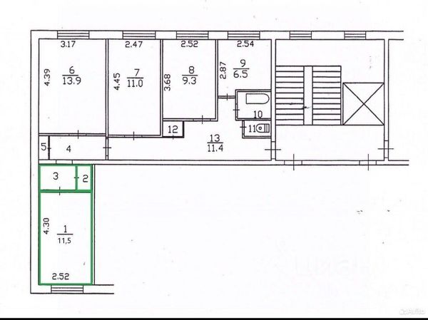 Продается комната 23,4 м2 в малонаселенной 2-х комнатной квартире в сталинском доме.