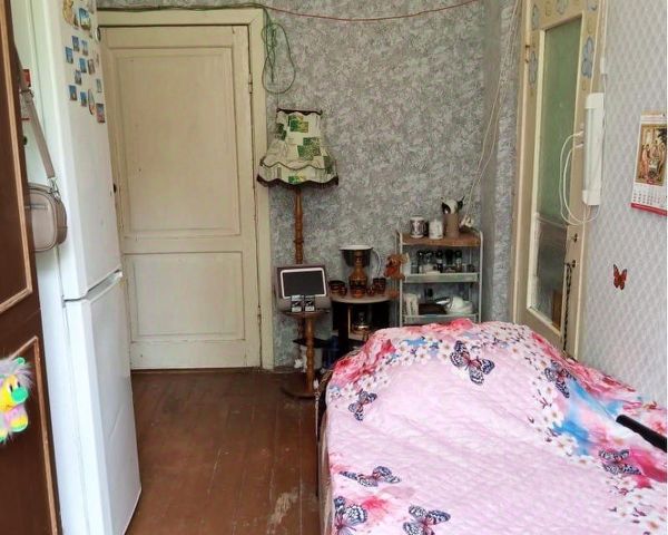 Продается комната с балконом в 3-х комнатной квартире. Одна комната закрыта, во второй проживает пара. Санузел раздельный, требуется ремонт. Собственность более 10 лет, никто не прописан. Нотариальные отказы готовы. Прямая продажа. Мебель в комнате остаётся. Рядом с домом остановка общественного транспорта.