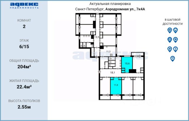 • ✓ В каталоге Циан 37 комнат рядом с метро Комендантский проспект.