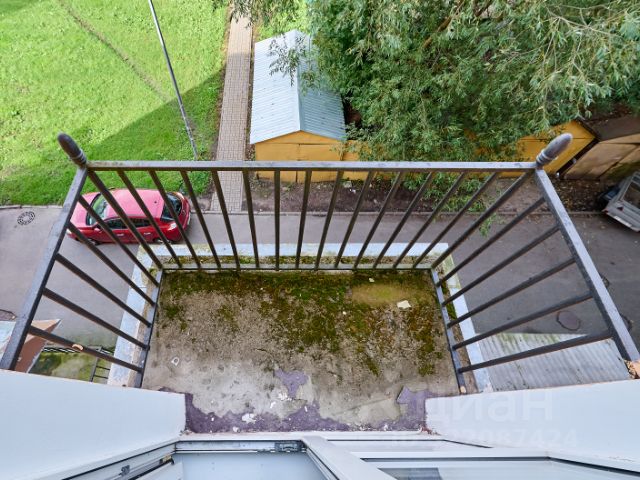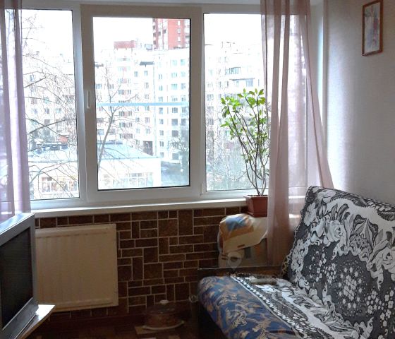 Комната 11,4 кв.м., высота потолка 2,50 м., есть незастекленная лоджия, из окна комнаты хороший вид на город - нет вида окна в окна, окно выходит на юг. Под окнами зеленый двор где не паркуют машины.